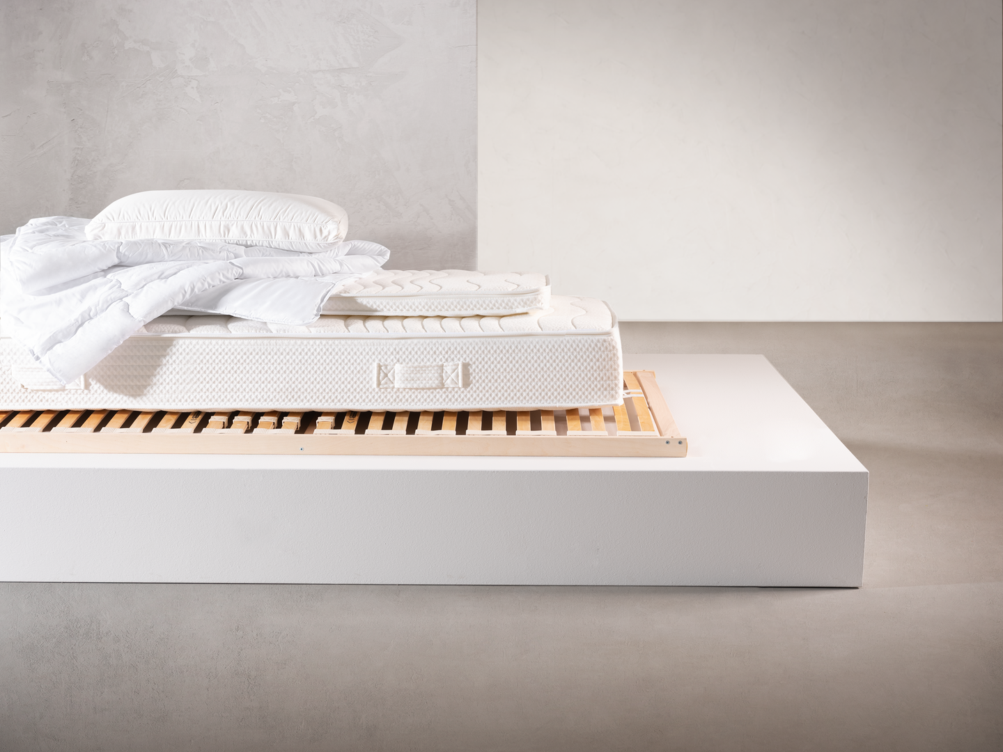Der abschließende Topper sorgt für den Feinschliff des Liegekomforts. Bei Symphonic by ADA sind Kalt- und Viscoschaum-Topper wählbar. Lattenroste bilden die Basis für ein perfektes Liegegefühl unter der Matratze. Mit fixen und verstellbaren Lattenrosten und Härtegradregulierungen in den verschiedenen Zonen ist für jedes Liegebedürfnis das Passende dabei. Bettzubehör wie Kissen, Decken, Volant und Fußplaid vervollständigen das Sortiment im Bereich Hotelausstattung.